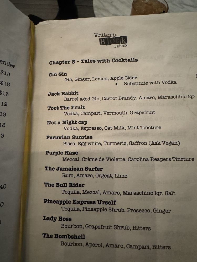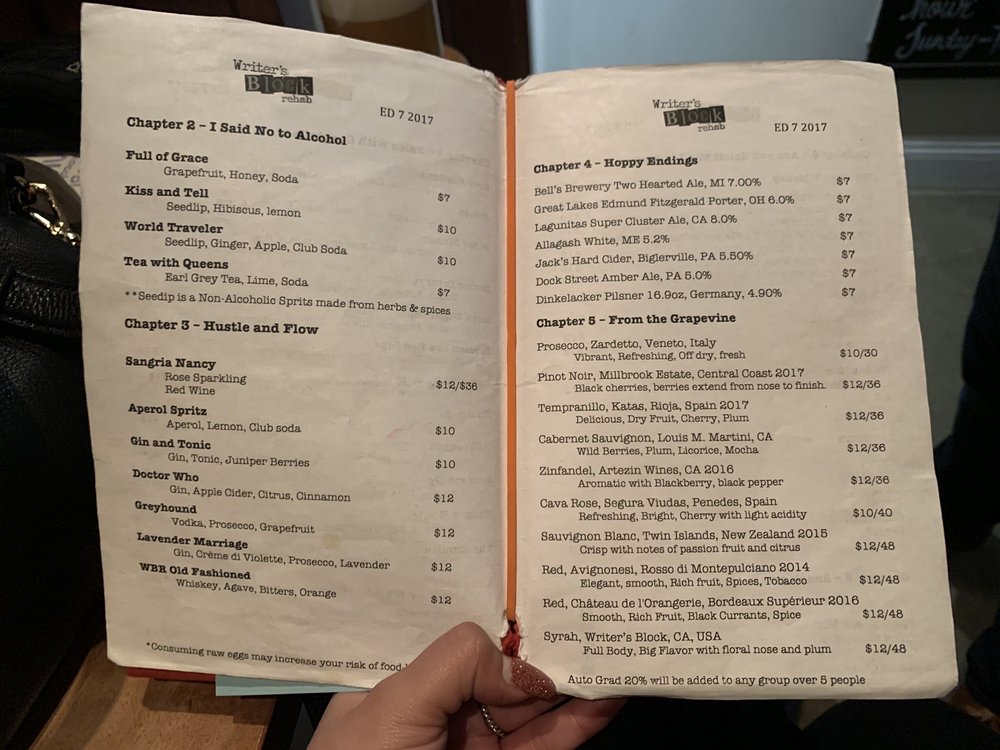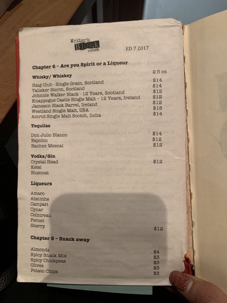 Welcome to Writer's Block Rehab, a hidden gem tucked away on Cypress Street in Philadelphia. This intimate and trendy bar is the perfect spot for a unique cocktail experience. With a full bar offering a variety of creative concoctions like the Arugula Martini and Forever Frida, you'll be sure to find a drink that suits your taste. The ambiance is cozy and inviting, with gender-neutral restrooms and free Wi-Fi for your convenience. The space can get a bit crowded, especially on popular nights, but the friendly and knowledgeable staff make the experience worthwhile. Whether you're a writer looking for inspiration or just looking for a new favorite cocktail spot, Writer's Block Rehab has something to offer for everyone. Make sure to stop by and indulge in their delightful drinks and charming atmosphere.